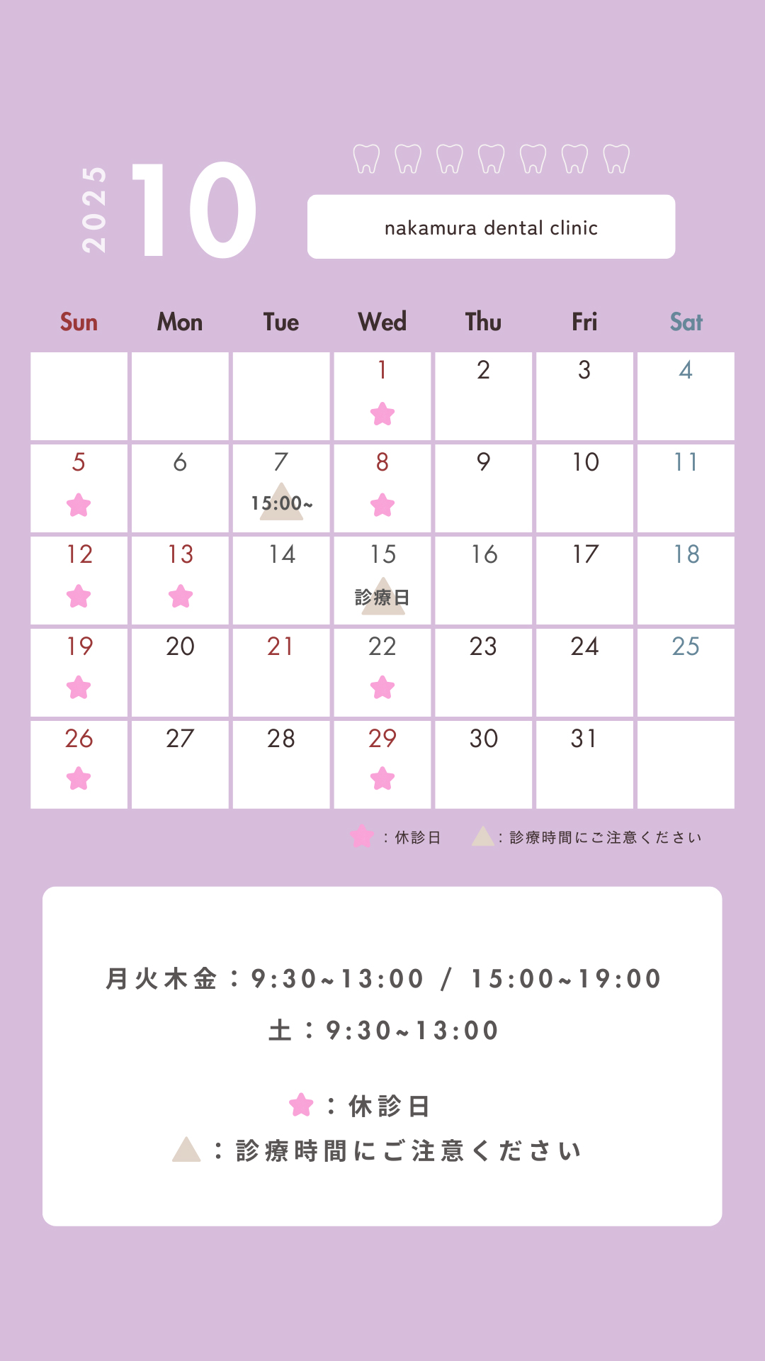 診療時間 | 月 | 火 | 水 | 木 | 金 | 土 | 日・祝 |